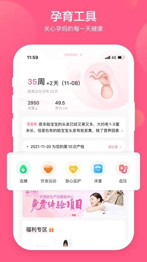 3、是目前唯一一款以母婴健康管理为主题、连接医生、孕妇及硬件设备的优秀产品。