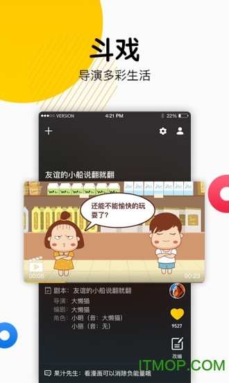 斗戏,为生活添彩,给我一段文字就能为你呈现一出好戏,让文字的趣味得以分享,让段子为大家带来无尽欢乐。斗戏操作简单,创作和编辑都很容易,助你发现生活中的乐趣,重拾精彩的人生,快乐无边,与其斗图,不如来斗戏!