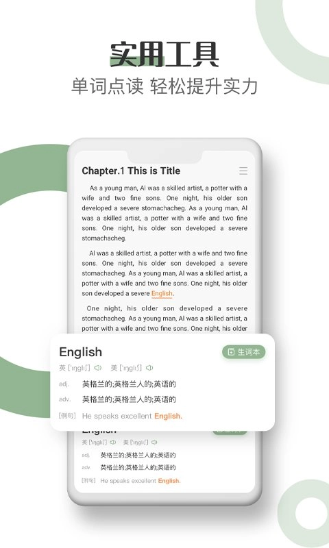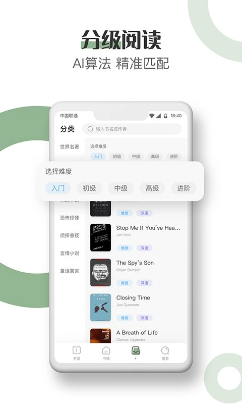 这是一款英语读书背单词软件,不管你是学生还是白领,通过英语看书都能轻松高效地学习英语,不用再死记单词、硬背语法,让学英语变得简单又有趣。快来用英语读书,边休闲边提升阅读能力,就算是懒人也能轻松读懂!