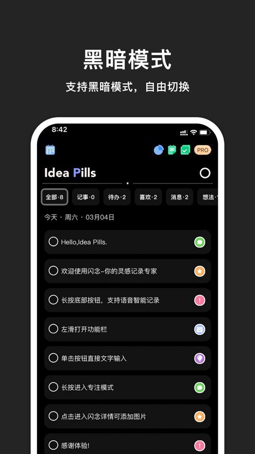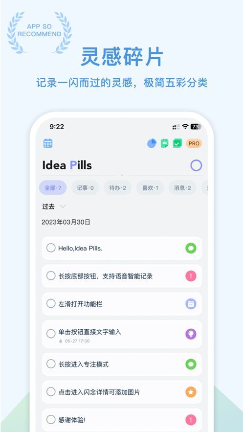 闪念胶囊是一款融合“灵感记录、归档分享、整理提醒”等功能的软件,帮助用户随时捕捉稍纵即逝的灵感。它支持文字、照片、语音、视频等多种记录形式,能满足不同用户的记录偏好,让您不必再为错失灵感而遗憾。
