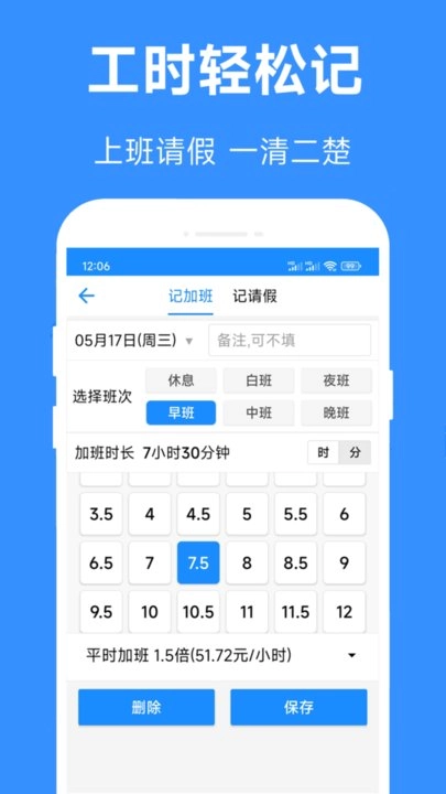- 快捷记加班 一键记录加班,时间精确到分钟