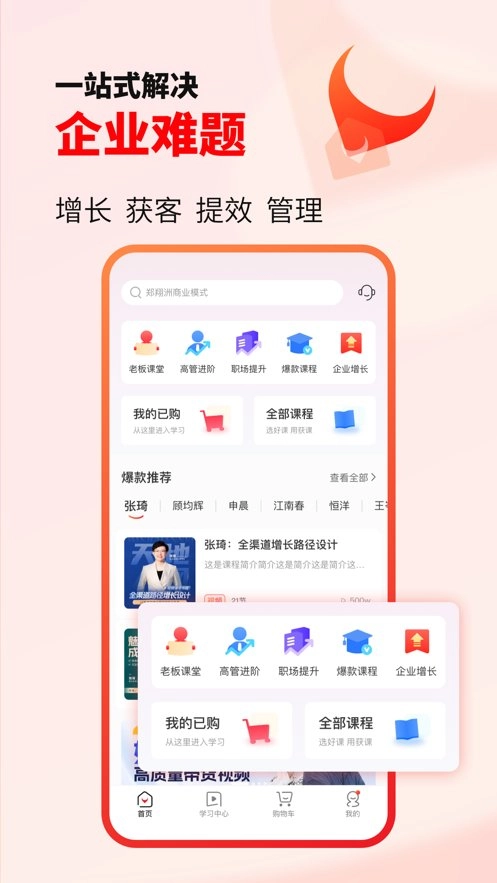 聚焦全中国管理培训行业的定位赋能,依托互联网基因,借助“知识IP孵化+全媒体运营获客+知识电商交易”的多元业务模式,为知识内容创作者、知识内容付费用户以及商学院类商家提供全方位赋能!