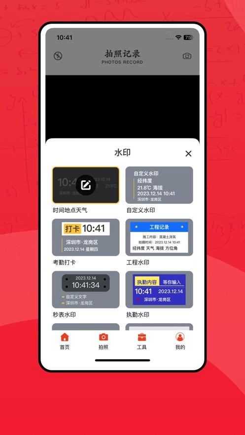 【打卡相机】选定水印样式后一键拍摄,带有水印的照片便会自动生成。