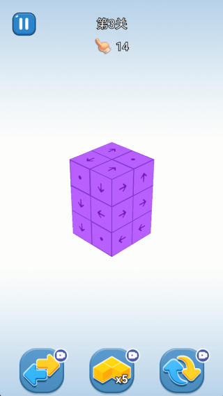 3、配备场景旋转功能,能够从多个角度查看箭头的排布情况,从而发现那些隐藏的消除契机以及特殊的小黑点标识。