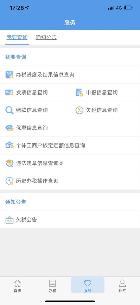 提供了面向企业与个人的涉税信息查询服务,以及面向公众的通知公告、征期日历、办税地图等内容。