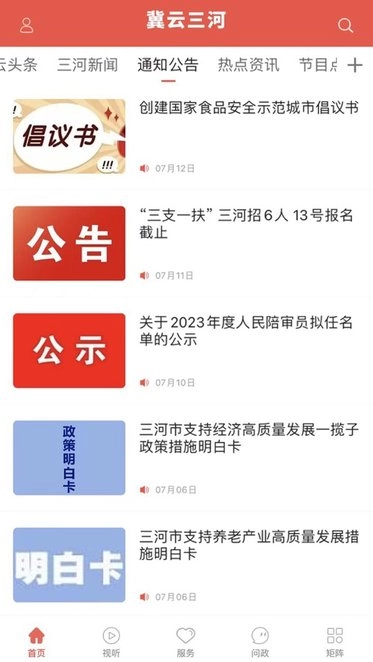 3、冀云三河平台上汇聚了种类丰富的各类栏目与电视内容,等待您前来在线观看。