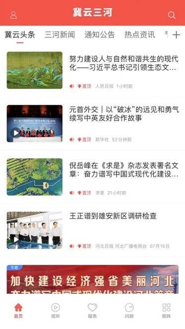 冀云三河客户端是三河融媒体中心精心打造的三河首个新闻客户端,以“新闻+党建+政务+服务”为核心定位,秉持“融汇精彩,传播美好”的宗旨,是兼具权威性、理性与丰富性,同时又生动活泼、服务周到的综合性平台。它致力于更快捷、更立体、更全面地讲好三河故事,传递三河声音,塑造三河良好形象。