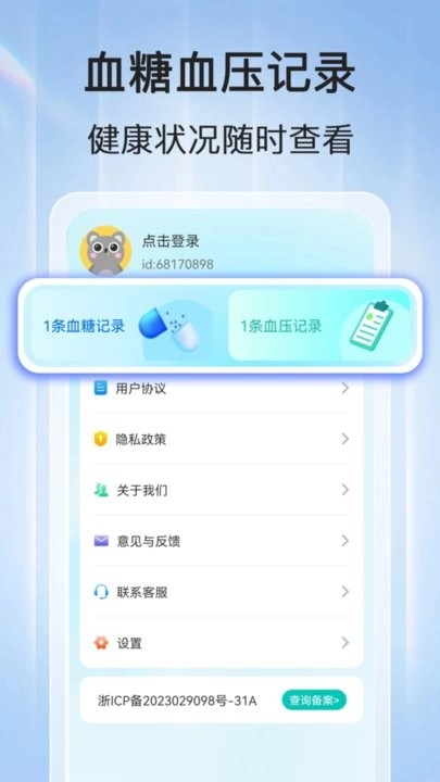 用户能够随时查看自己的健康数据,了解自身身体状况;同时该功能还可协助用户记录各项健康指标,如身高、体重、血压、血糖等。