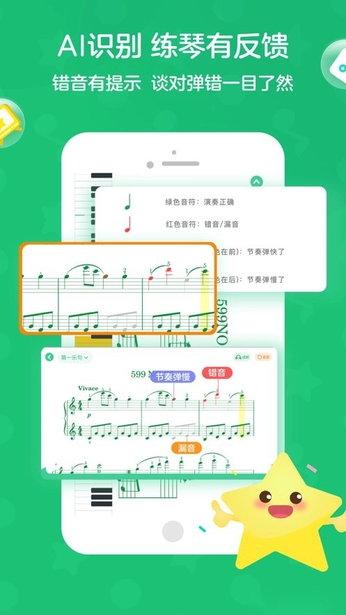 小星星AI陪练能够精准识别错音、漏音与错节奏问题,并提供实时反馈!