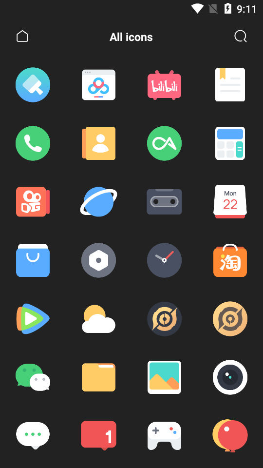 1.这款图标包软件没有固定风格,采用的是年轻人普遍偏爱的淡雅色调,外形设计也十分出色。