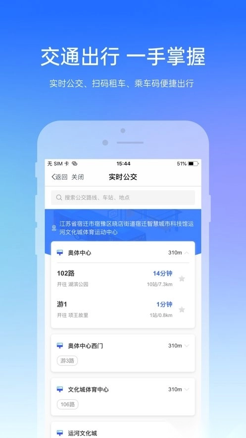 实时公交,扫描租车和乘车码,方便出行。