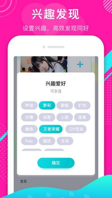 3、设定个人的兴趣爱好,系统会智能匹配并发现身边拥有相同兴趣的朋友。