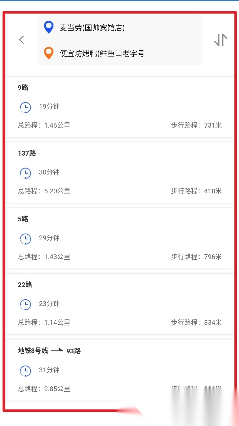5. 综合考量推荐方案与步行距离,挑选出最优路线,从而达成省时且顺畅的出行体验。