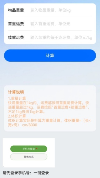 3、支持依据物品重量、首重运费、续重运费开展重量计算,也能够通过体积折算来进行体积计算。