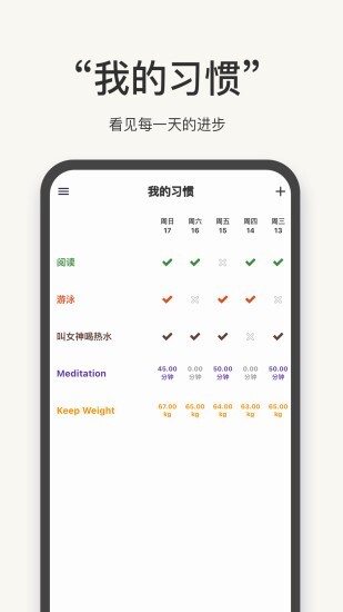 1. 习惯清单:用户可在此处查看个人的全部习惯,还能挑选需要进行跟踪的习惯。