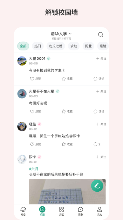 5、校友们也能借助平台发起聚会活动,让珍贵的校园情谊得以延续。 6、不管是热门的校园资讯、实用的学习方法,还是励志的成长故事,都能让用户体验到贴心的服务。