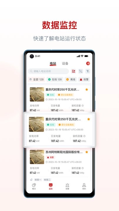 这是一款面向电站场景的运维管理软件,用户可通过它在线实时掌握电站每日的发电量情况,同时也能在线监测设备是否出现报警状态。该软件具备电站发电数据的分析功能,能生成多种类型的分析报表,助力用户快速发现潜在问题并采取及时有效的处理措施。