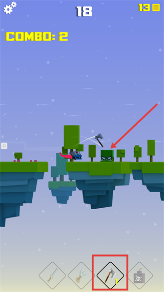 2、利用底部的【斧头】武器攻击绿色怪物,积累【COMBO-2】的连击次数,以此提高战斗效率。