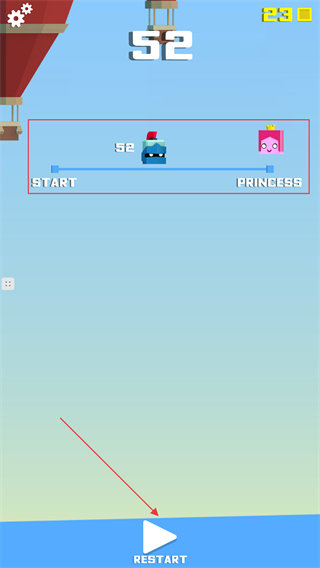 4、页面上方会显示当前关卡的结束进度,点击下方的【PRINCESS】按钮即可重新开始该关卡。