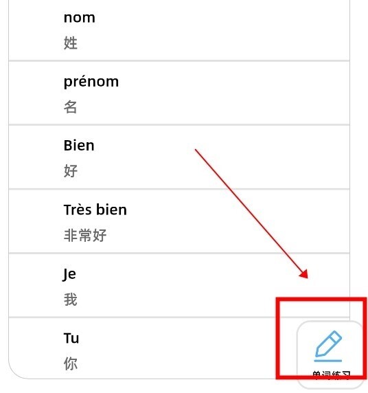 进入课程学习页面后,在右下方能看到【单词练习】按钮。