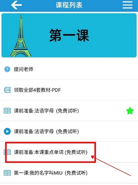1、完成法语从入门到精通的学习后,点击首页并选择任意你感兴趣的课程内容。