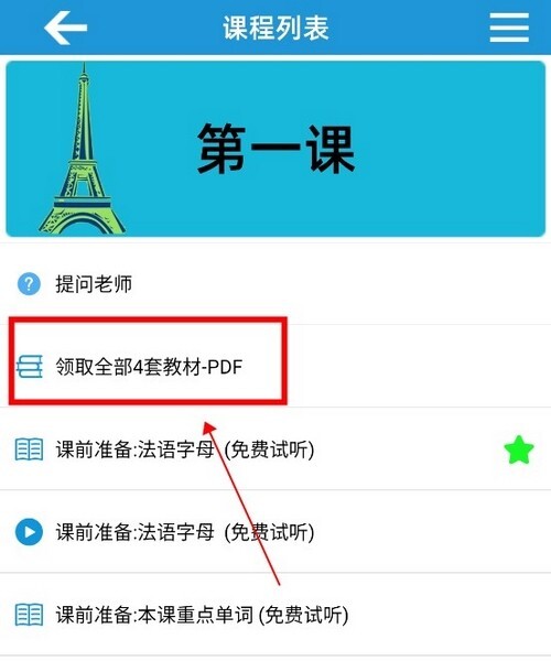 2、在课程页面里能找到【领取全部4套教材-PDF】这个选项,点击它即可。