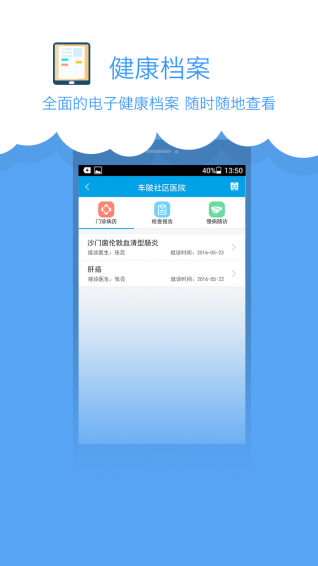 2、健康档案管理:帮助用户创建专属的个人健康档案,用以记录其健康状况、既往病史等相关信息,既便于用户能够随时查阅自身健康资料,也能为医生开展诊疗工作提供更为精准的判断依据。