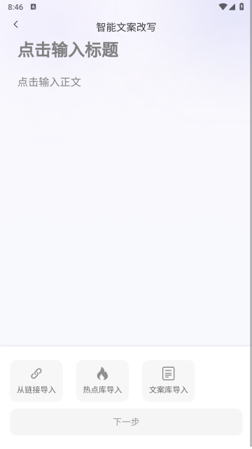 2.进入重写页面后,能看到该App提供三种文案导入方式:链接导入、热点库导入和文案库导入