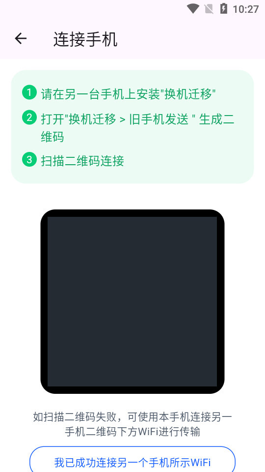 步骤三:依据待传输的内容挑选对应的文件类型,扫描二维码来建立连接,稍等片刻,传输就能完成。