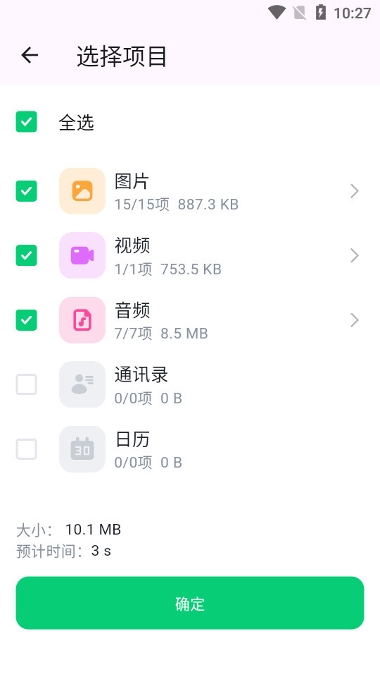 支持的数据类型十分全面,基本涵盖了手机常见的各类数据,像图片、