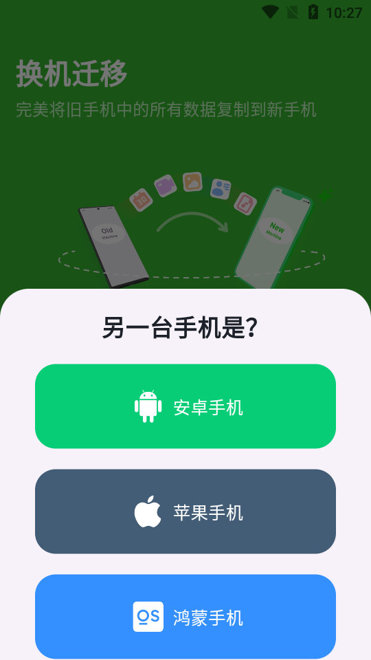 。步骤二:新手机端选择“新手机接收”,旧手机端选择“旧手机发送”,并且分别确认各自的操作系统。