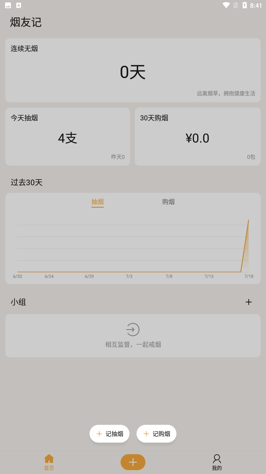 烟友记能帮助用户快速戒烟,无论烟瘾大小都能成功戒除,戒烟数据可随时查看,独自戒烟感到无聊时还能寻找同伴一起戒烟。