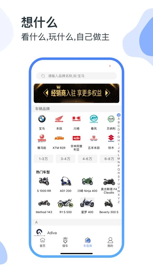 这是一款提供在线车源的摩托车服务软件。用户租赁摩托车需满足实名认证、年满18周岁,且持有摩托车D或E驾照的条件。此外,您也可以将自有摩托车通过该平台出租以获取收益,甚至可以借助它开展专业的摩托车出租业务。
