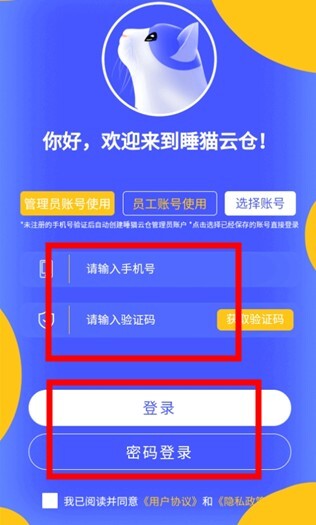 - 并安装睡猫云仓后,打开软件,注册并登录账户。