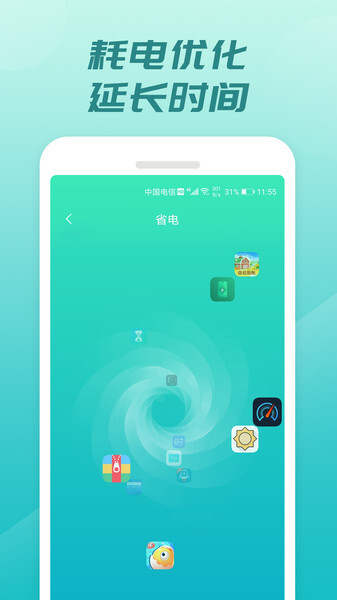 一键省电功能:只需一次操作,即可快速关闭后台耗电应用并智能优化设备配置参数,操作简便高效,帮助设备直接降低电量消耗。