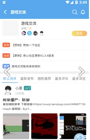 奇心社区是一款专注于游戏交流的社区类软件,这里聚合了各式各样的游戏圈子供用户交流互动。获取游戏资源的过程十分便捷,能轻松找到许多有趣的游戏资源。平台每天都会提供免费的游戏奖励供用户领取,用户可以畅快体验各类手机大型游戏。若有任何游戏相关的见解,还能在线发表评论,助力用户结识更多志同道合的游戏好友。