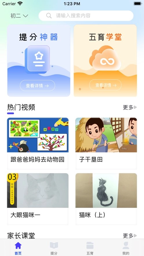 它包含空中课堂、精彩回放、同步课堂、融合德育、家庭教育、作业题库、错题本、在线阅卷、系列课程、名师在线等多种教育和学习功能,还能针对听课情况、学习情况、章节知识点掌握情况、试卷与作业成绩等方面生成有针对性的学情报告分析。