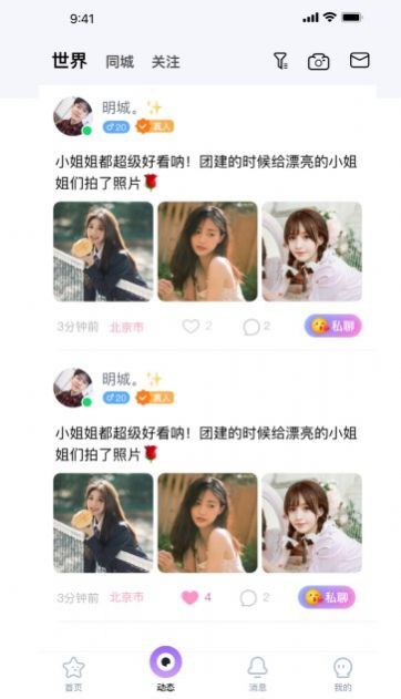 3、每天都有大量用户在线分享发布最新的个人动态,还能关注自己喜欢的对象。