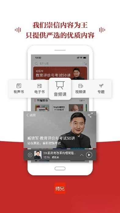 每日都能掌握最新的知识动态、行业资讯以及专家观点。无论是文字形式还是语音形式,学习过程都变得更加轻松便捷。师兄是一个集图文、音频、直播和电子读物于一体的综合学习平台。不管你是教育工作者、在校学生还是家长,这里每天都会有经验丰富的教师和行业资深人士分享心得、解答疑惑。借助晨间、睡前或者通勤的零碎时间,每天只需投入十二分钟,就能实现持续成长。