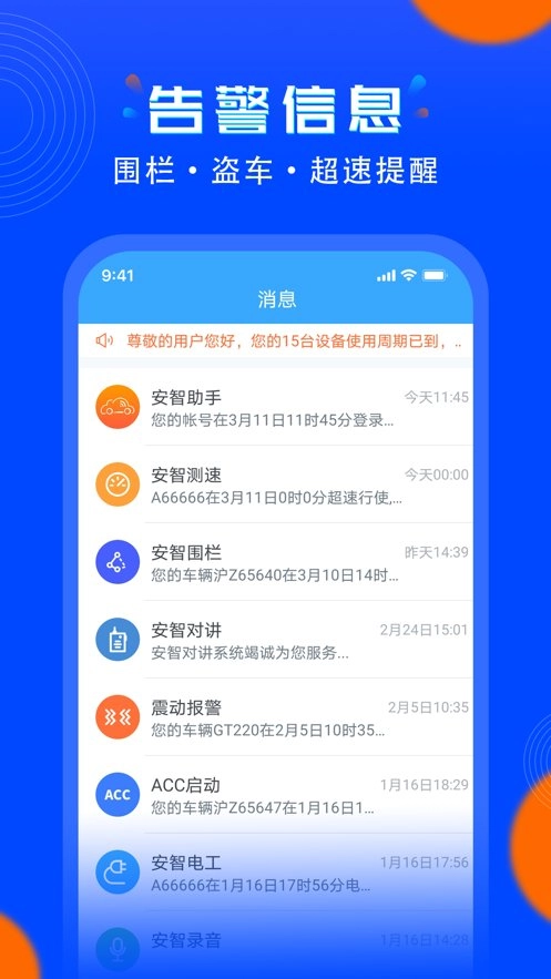 8、消息提醒,断电、围栏、消息通知。