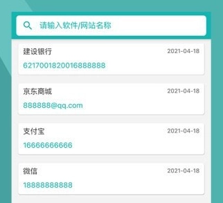 1.输入软件名称即可查询到对应的账号密码,为用户带来更多便利。