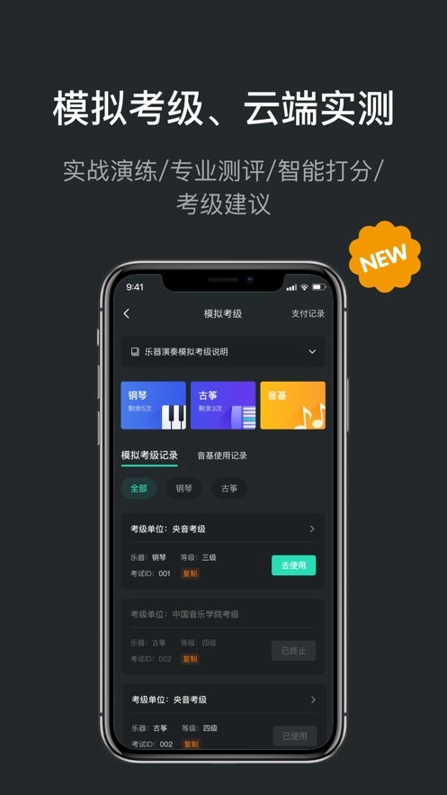 能够对用户参与模拟考级的考试内容开展智能评分工作,帮助用户知晓自身的考试成绩。