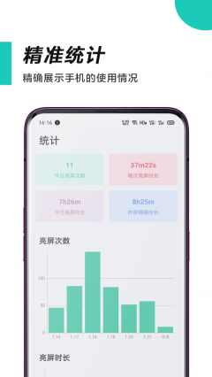 2、在这里,你能更轻松地查看软件在各个时间段的使用情况,以及手机的亮屏时长。