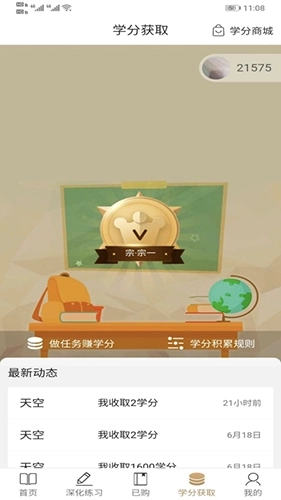今天得到的学分,得等第二天才能在“学分获取”页面去摘取。另外,我们互相关注的好友也能摘取我们获得的学分。