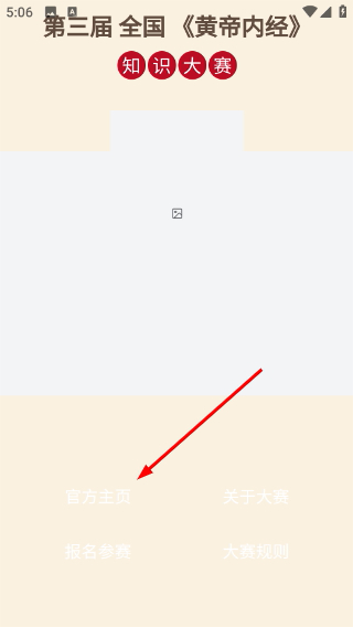 1、此页面为第三届全国《黄帝内经》知识大赛的相关界面,点击【主页】选项,即可了解赛事的基本信息。