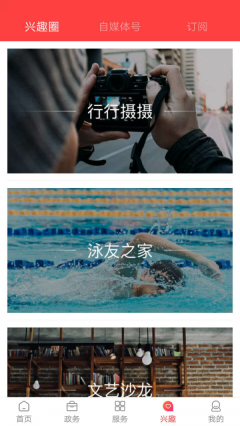 6、支持一键订阅频道,在兴趣圈里可选择订阅摄影、游泳、文艺等不同类型的频道