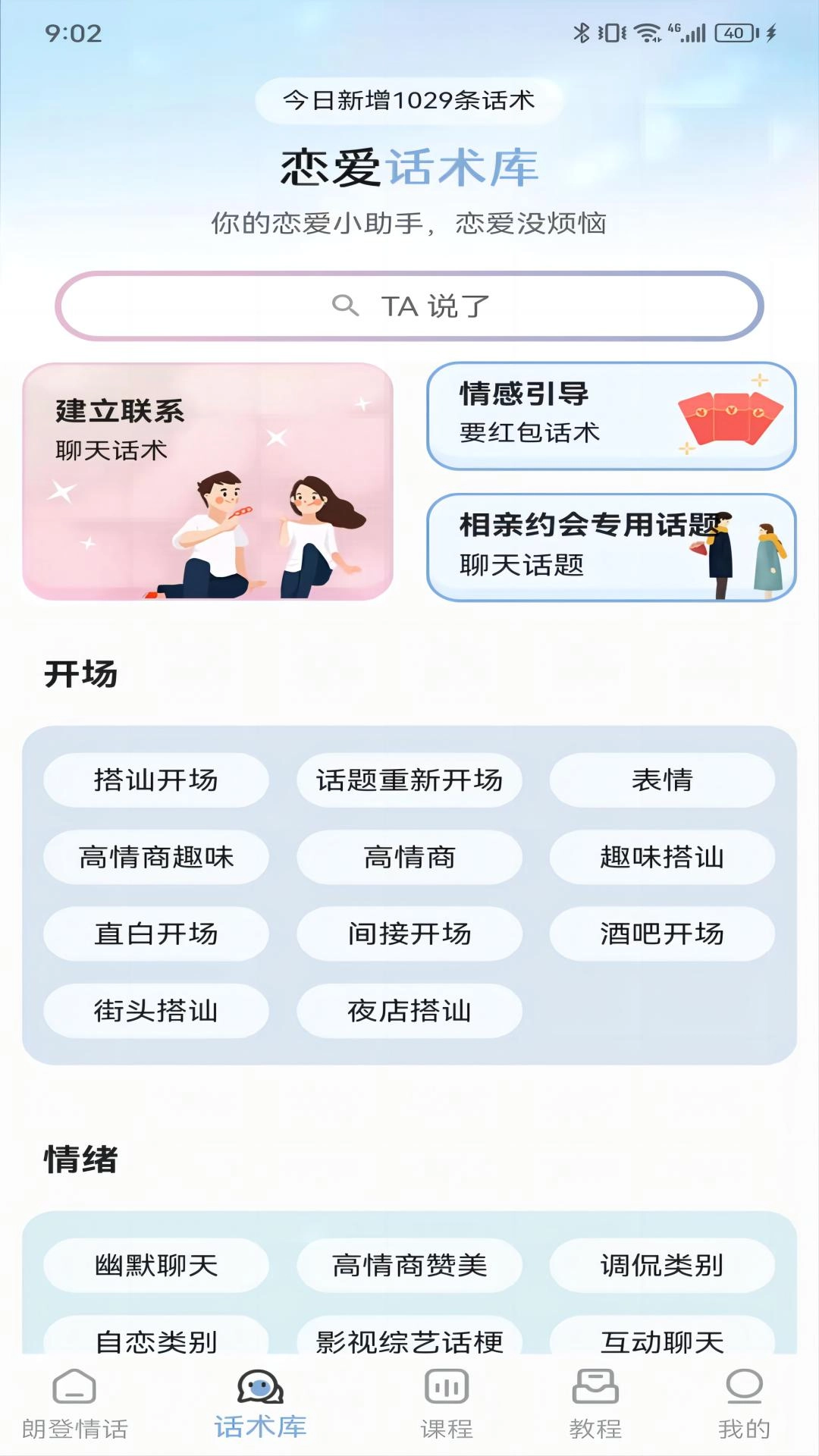 1、这是一款可提供海量可搜索恋爱聊天话术的手机应用程序。