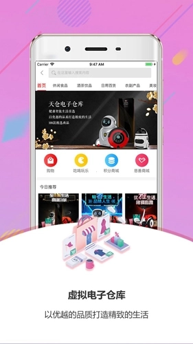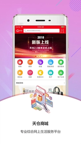 《天仓》是天机云计算有限公司自主研发的专业实用型手机购物平台软件。平台致力于为用户甄选生活中的优质商品,力求让大家以最实惠的价格购得心仪好物,真切感受到购物的乐趣!平台涵盖购物、休闲娱乐、医疗健康、教育培训、应急救援、小微创业、公益慈善、财富管理、便民服务、智能家居等多元板块。目前已在全国范围内布局创业网点,旨在解决会员“最后一米”的终端服务需求;同时制定了标准化的分润规则,让用户能够全天候享受收益带来的惊喜。