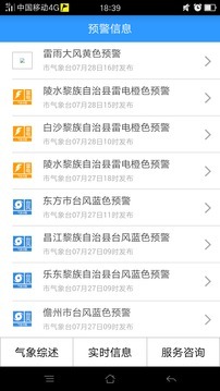 4、预警信息:为公众提供全省气象、海洋、水务等预警信息的查询服务,便于提前掌握防灾动态,做好避险准备。