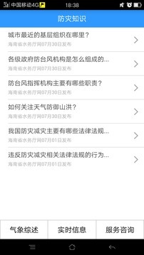 3、服务咨询:服务热线,防灾知识,征集意见。